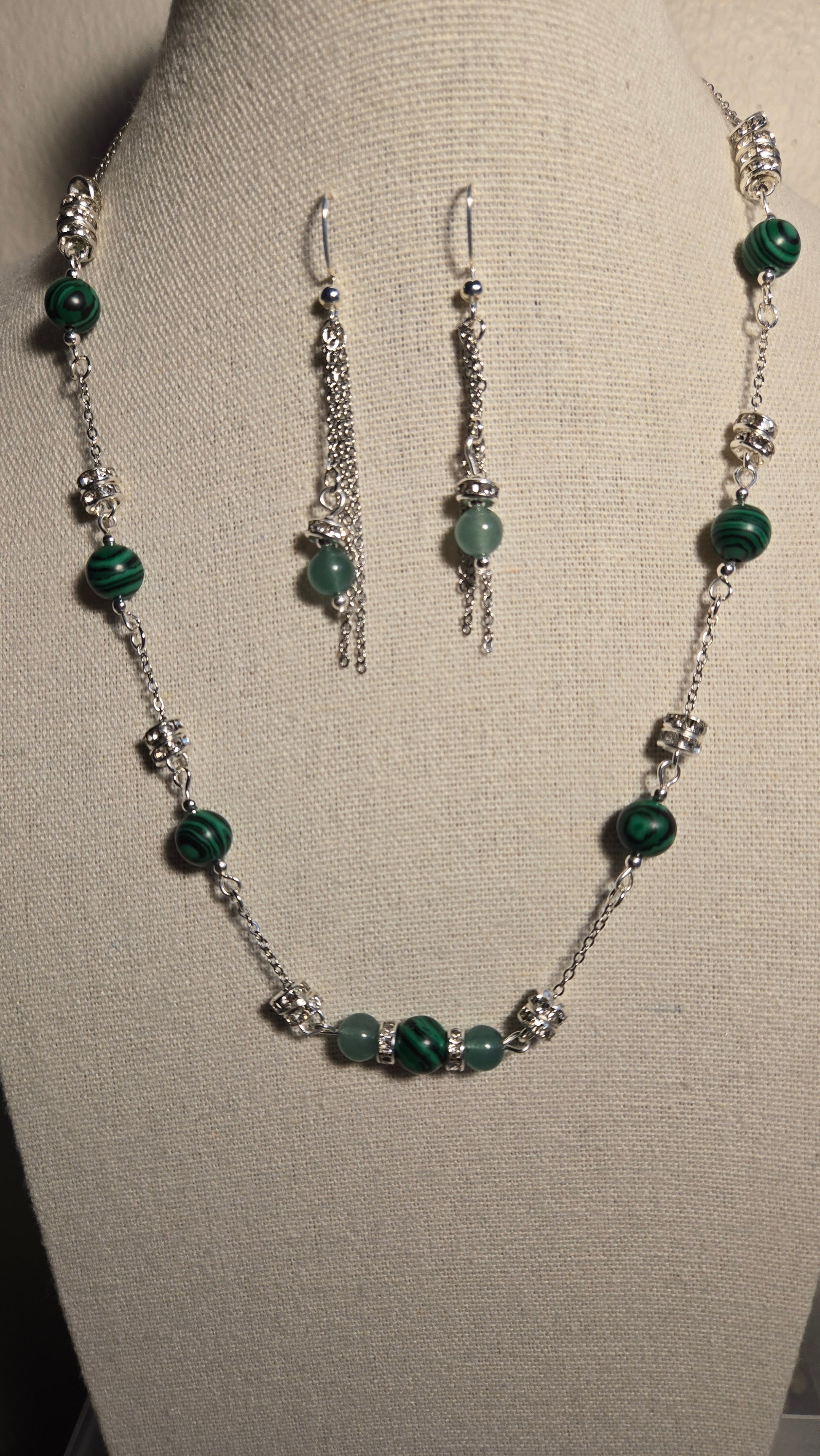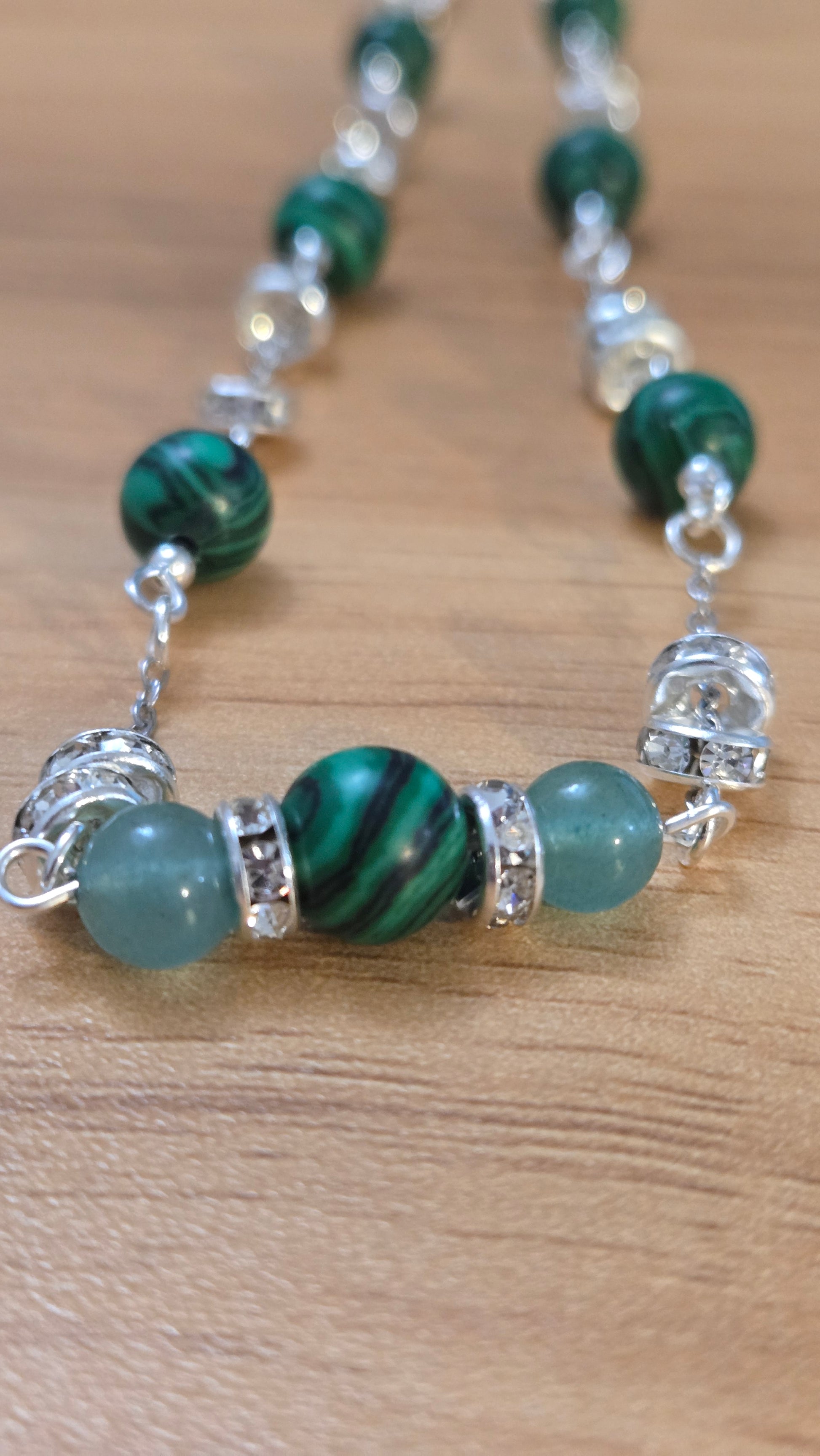 An elegant jewelry set that combines lustrous green pearls with deep emerald stones, adorned with sparkling silver details that add a touch of luxury and refinement. Its modern design enhances your look with natural beauty and graceful femininity, making it the perfect choice for special occasions.