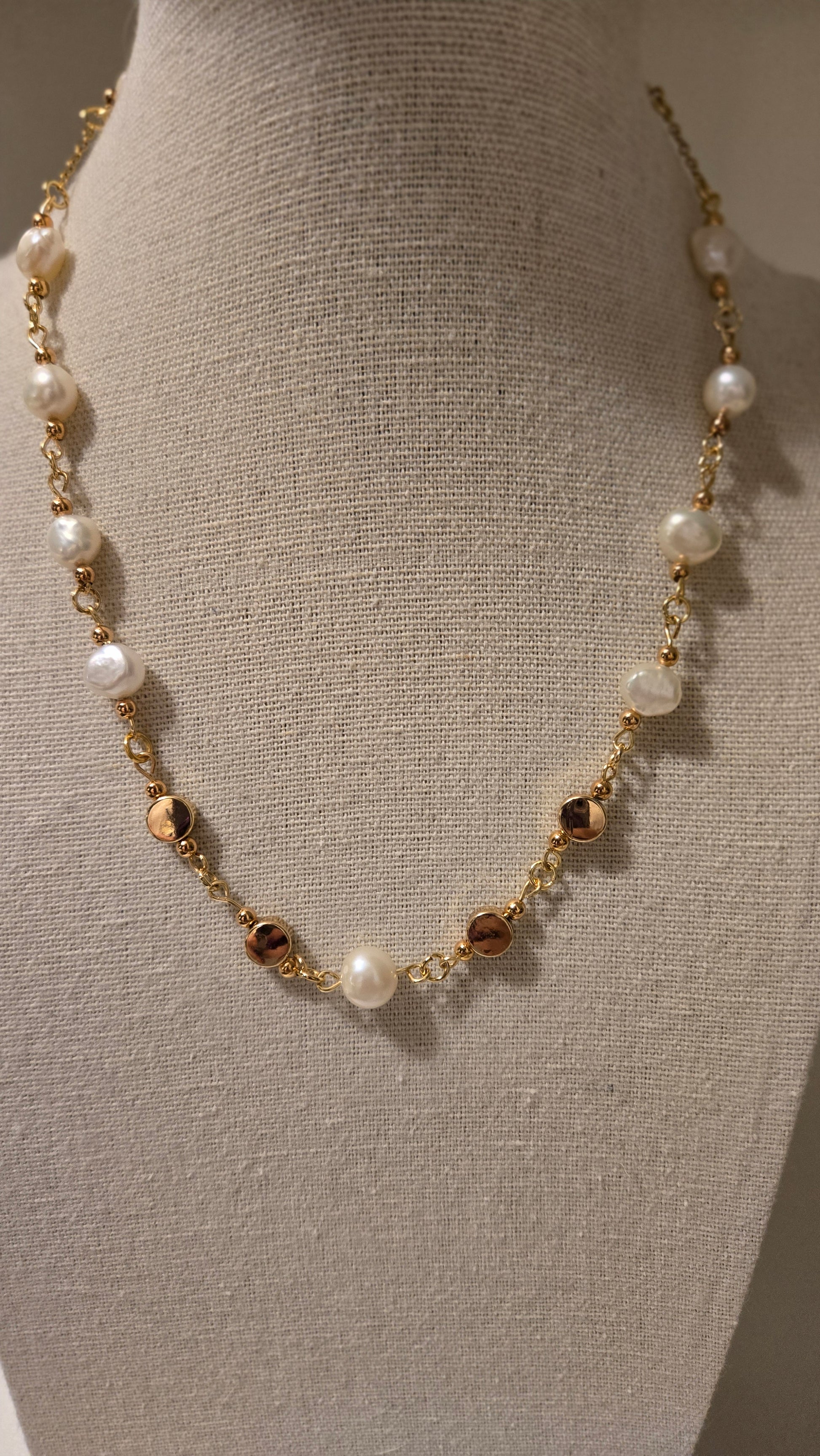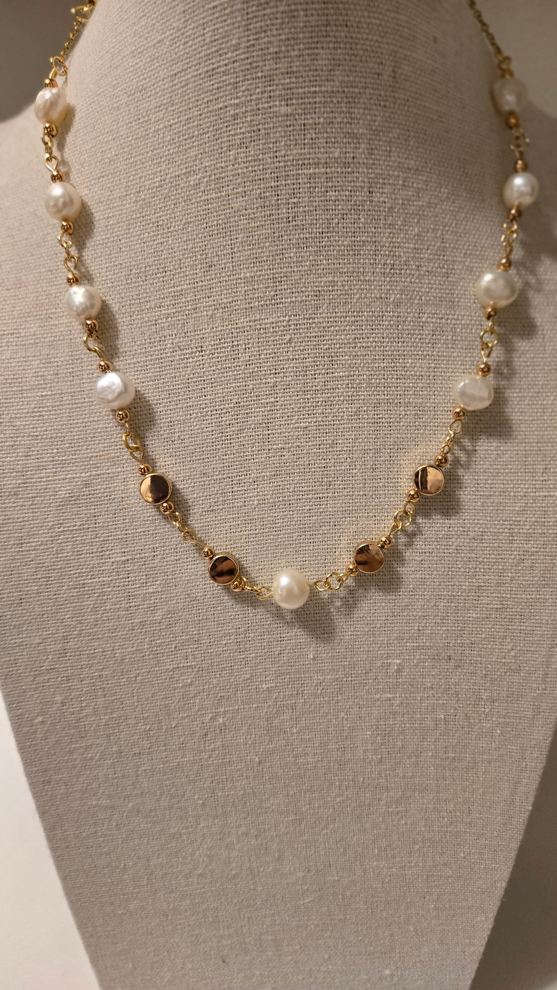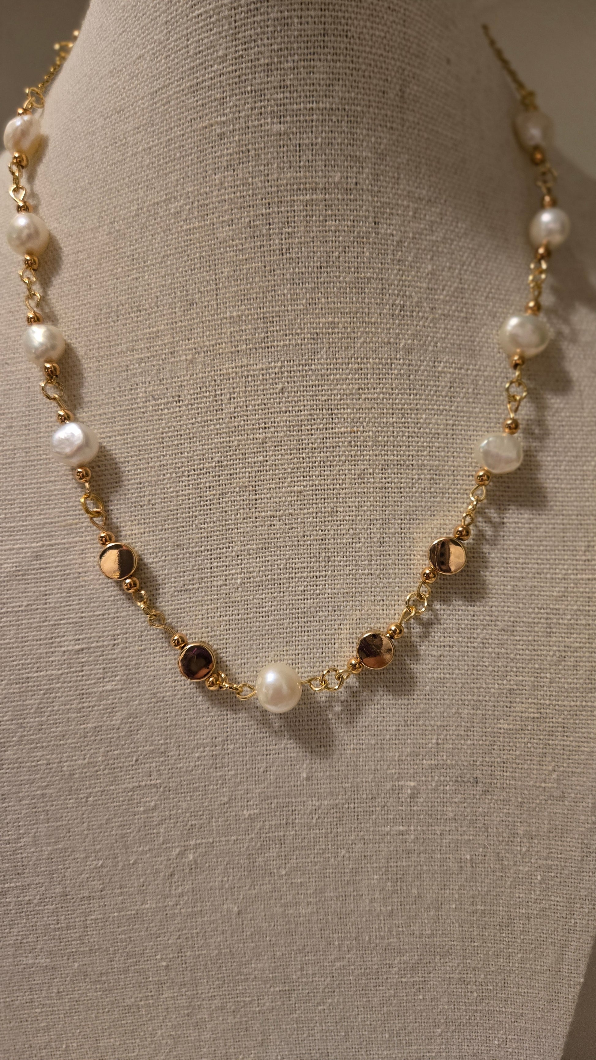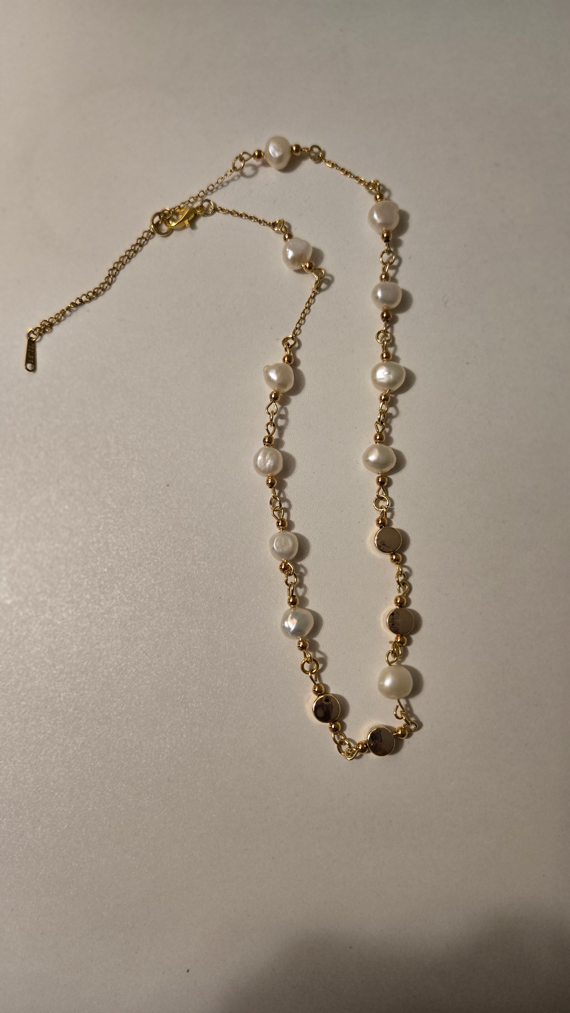A piece that embodies purity and elegance, crafted from soft pearls delicately combined with golden accents to bring out your feminine glow. The necklace blends simplicity and luxury, making it a perfect choice for both special occasions and your everyday moments of grace.