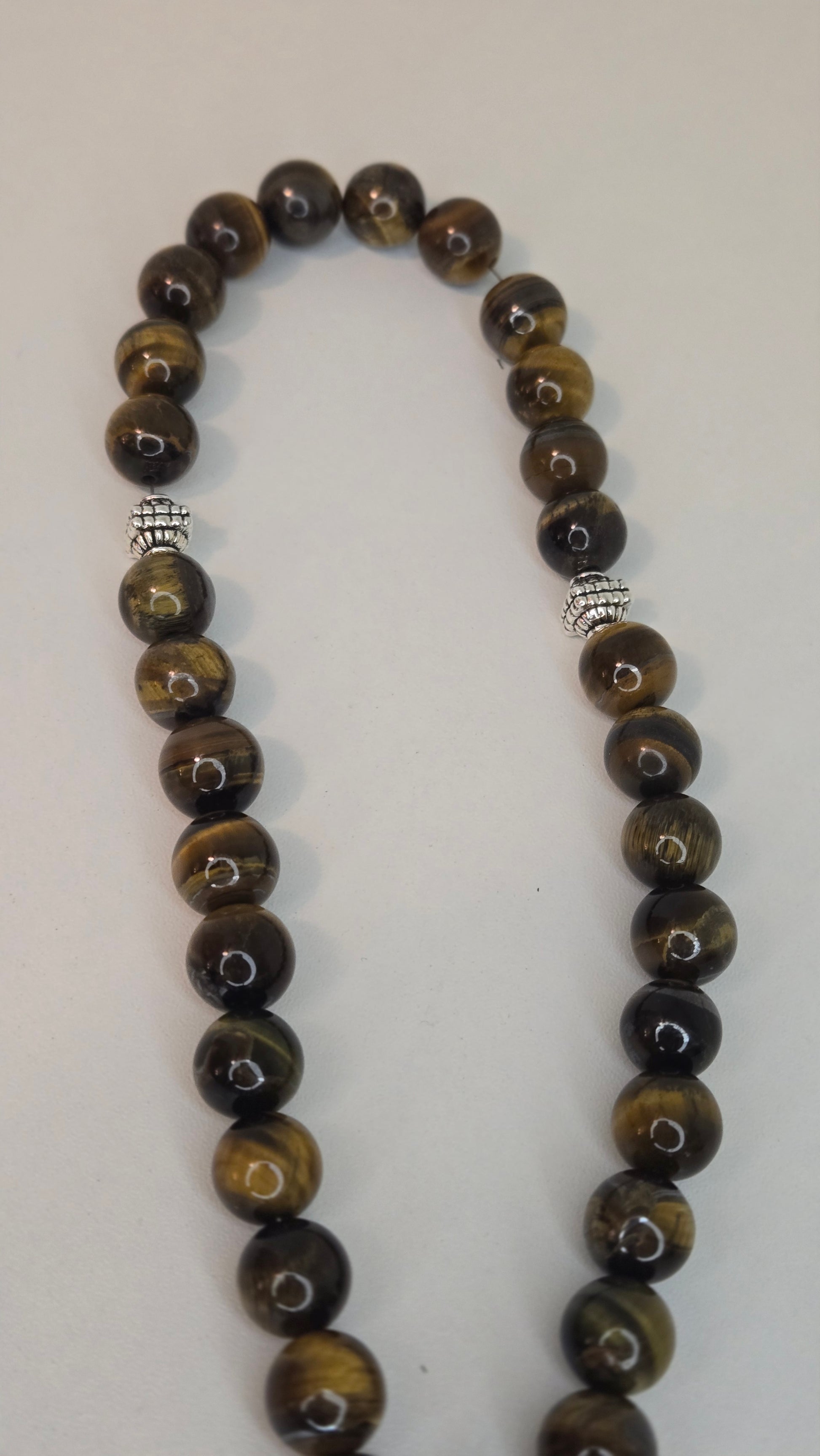 Elegant prayer beads made with natural Tiger’s Eye beads, known for their rich brown and golden tones. Finished with durable stainless steel chains and refined silver-tone details, combining strength, elegance, and timeless spiritual beauty.